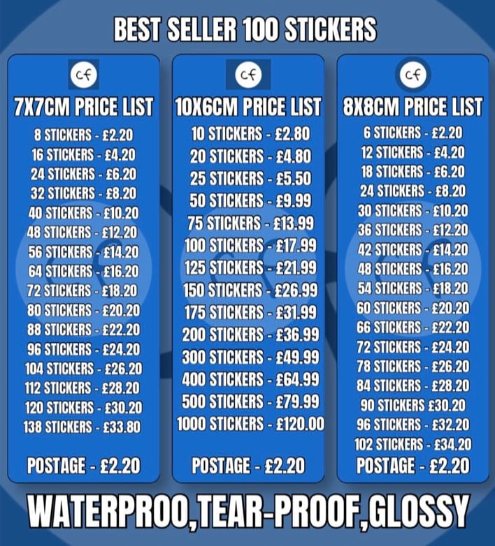 Delivery: 1 week (1–2 weeks for orders over 175 stickers)